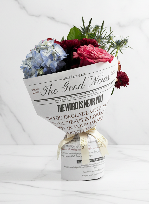 Each Good News bouquet is handcrafted with seasonal blooms and wrapped in our custom Good News paper, paired with a Scripture card that speaks life into whoever receives it. Whether you’re celebrating, comforting, or surprising someone “just because,” this bouquet is meant to remind them of God’s love in a tangible way.